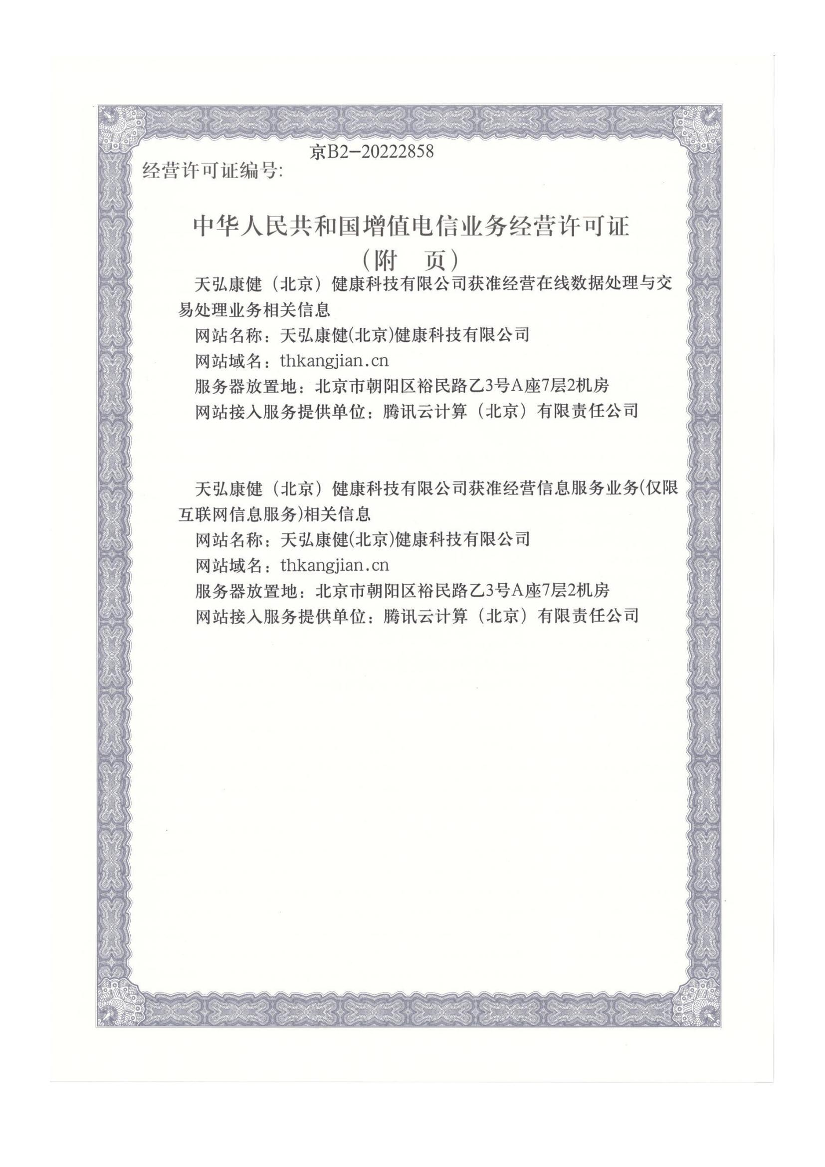· 增值电信业务经营许可证